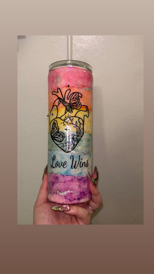 Custom 20oz stainless steel rainbow tumbler.